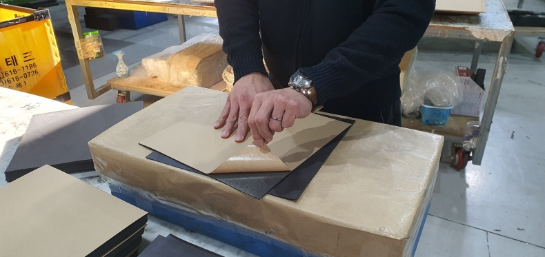 점착력 확인 및 제품에 기포가 생기지 않도록 합니다.