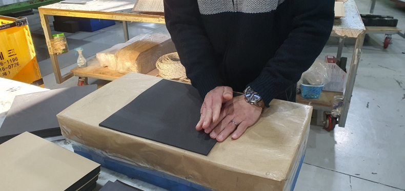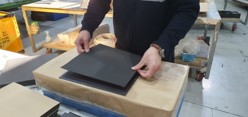 1차 목형규격에 맞도록 수직재단합니다.